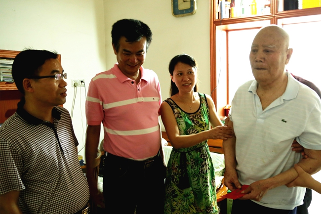 【概要描述】   “七一”建黨節(jié),公司黨委委員、紀檢書記兼工會主席王小華(左一)一行,代表公司黨委對公司離退休原領(lǐng)導干部進行走訪,并送上慰問金,...